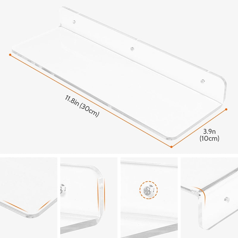 Acrylic Floating Shelves for Wall, Clear Acrylic Shelves for Bathroom, Living Room, Bedroom, Kitchen Wall Display Shelf Clear