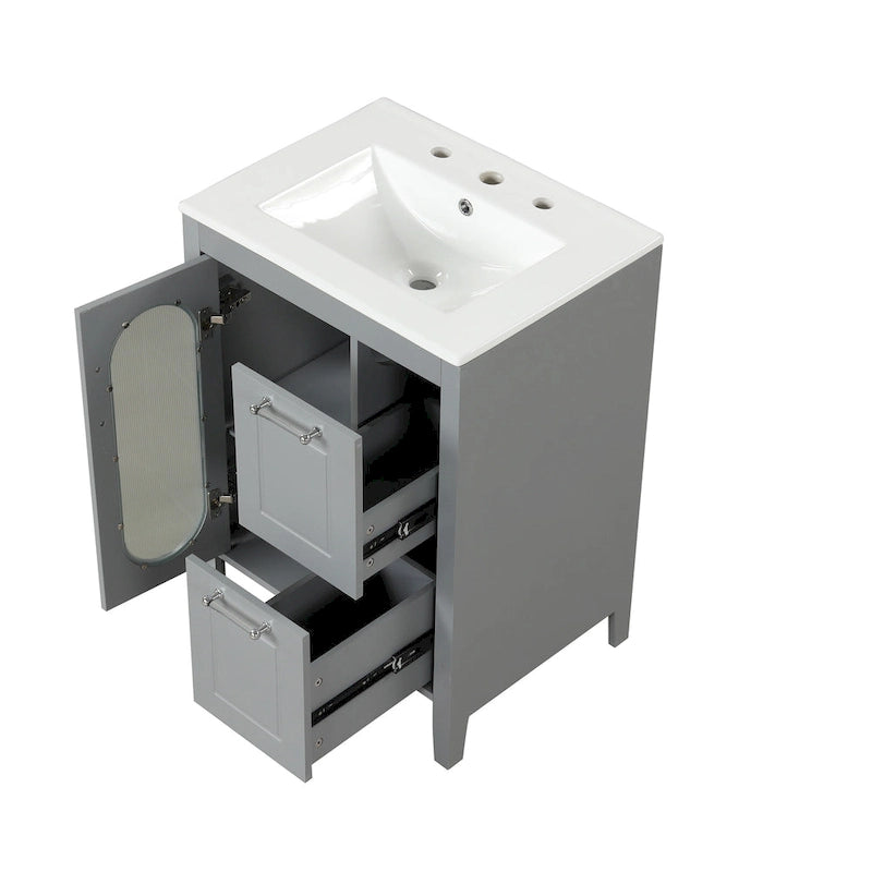 Assembly Required: This bathroom vanity, one package, needs assembly. All the hardware and instruction manual are provided. You can install it according to the instruction easily.