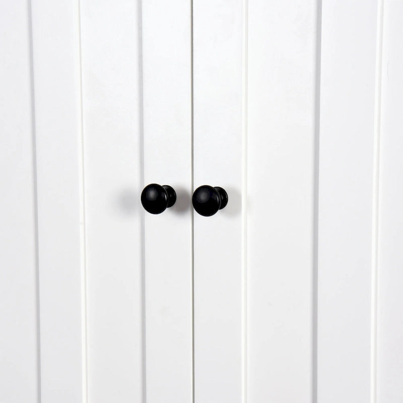 - Crown molded top, 2 doors with shutter design, and chrome-plated knobs