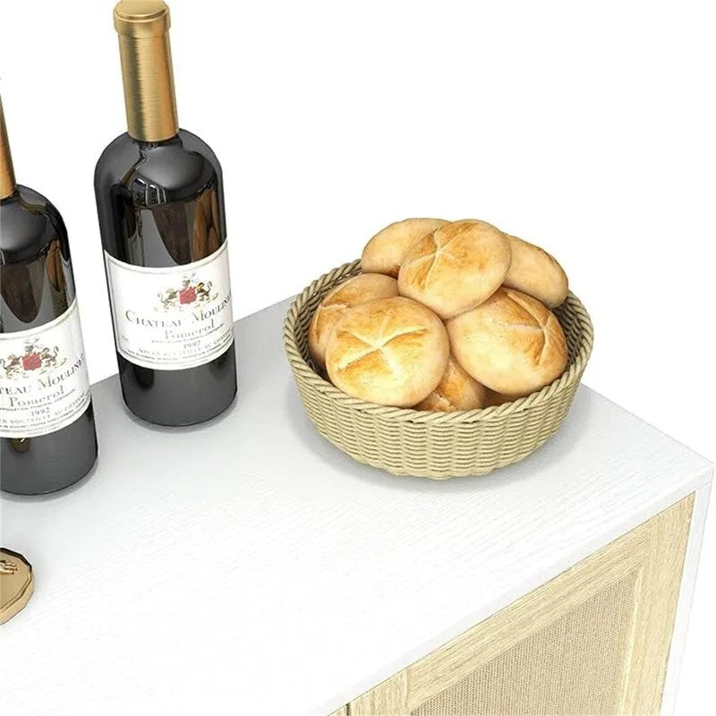 - Rattan Decorated Design: This stylish buffet cabinet sideboard features a unique rattan decorated 2-door design, effortlessly adding a touch of sophistication and charm to your kitchen or dining area..