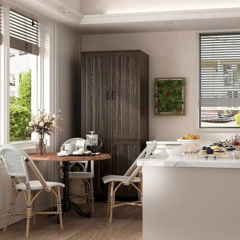 Sleek and Seamless Aesthetic: The cabinet doors feature a sleek design with handles for easy access. The dark wood grain color adds a touch of elegance to any space, complementing various decor styles.