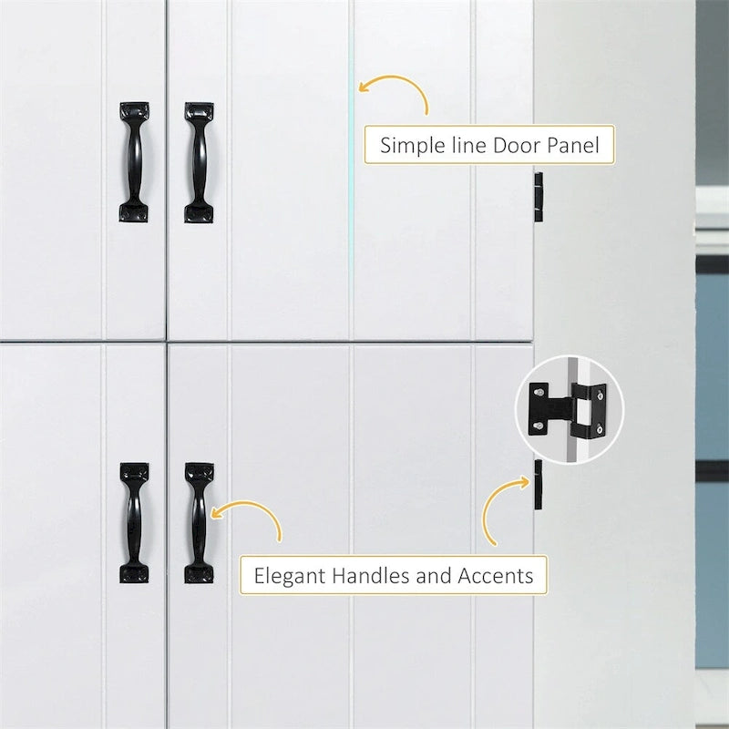 - Make a Statement: If you spend a lot of time in the kitchen, you want a beautiful piece that you enjoy looking at and matches the theme in your home. This kitchen pantry cabinet features simple lines and a neutral color scheme, with elegant black handles, makes it a great piece for your kitchen, living room, or dining room dcor.