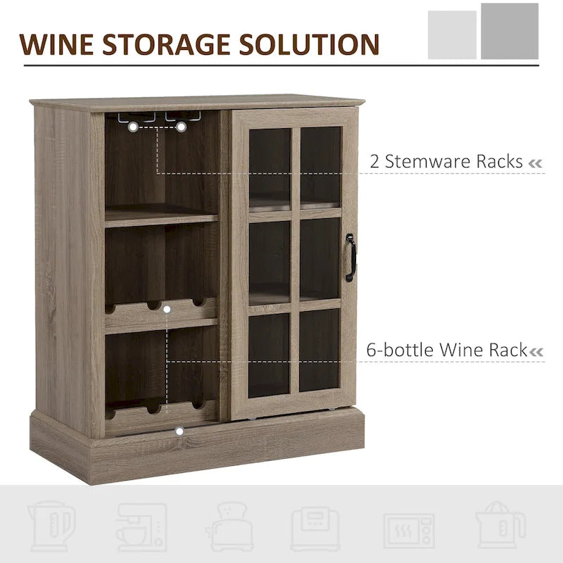 Bring elegance and functionality to your home with this HOMCOM Sideboard. The sliding glass door allows for easy access to both sides of the storage area, while the 6-bottle wine rack and stemware racks provide ample space for your wine collection. Made from MDF with dark metal handles for stability and easy cleaning, this buffet cabinet is perfect for use as a bar cabinet, serving buffet, or storage sideboard in-home bar and dining spaces. Display your cherished keepsakes with the tempered glass feature that brings elegance and romance to your interior design.