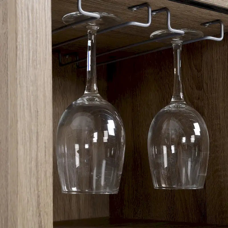 - 6-bottle wine rack and two stemware racks provide ample space for your wine collection