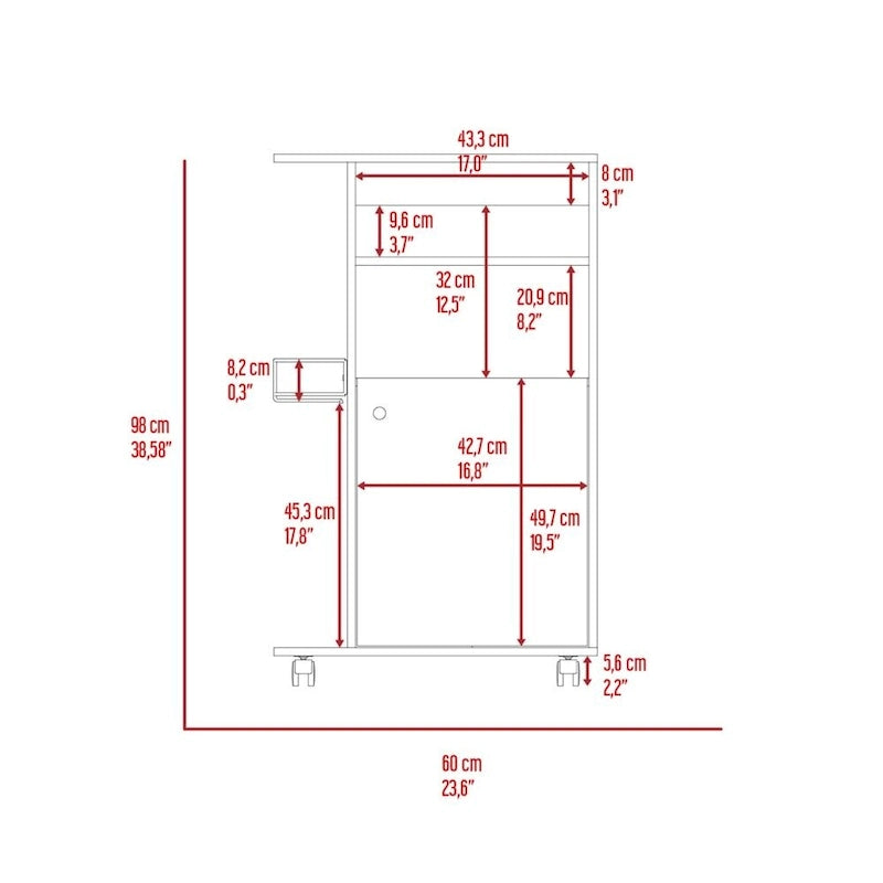 Kitchen Cart Kryot, Single Door Cabinet, Four Casters, White Finish,High quality and durable