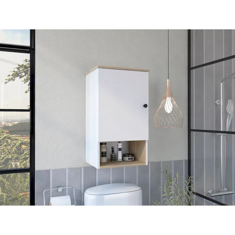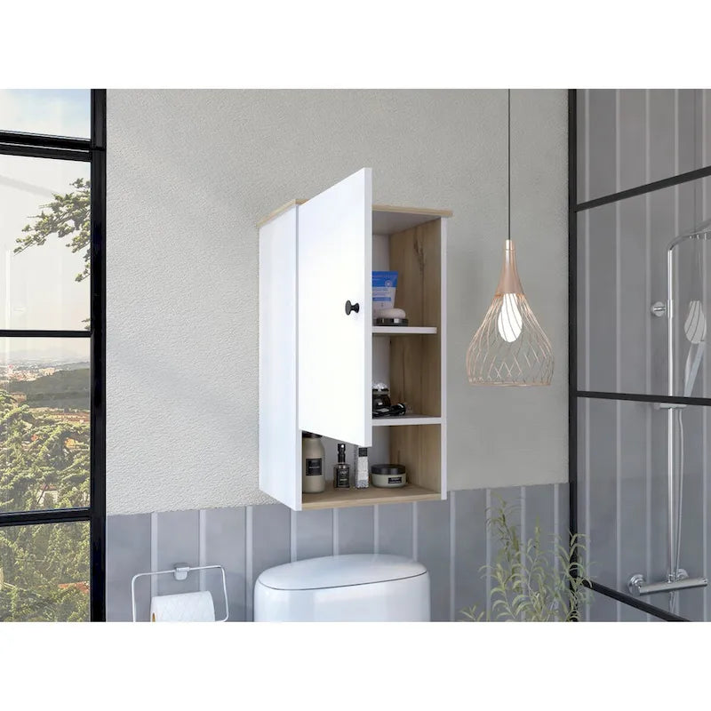 Medicine Cabinet Porto, Two Internal Shelves, Light Oak / White Finish