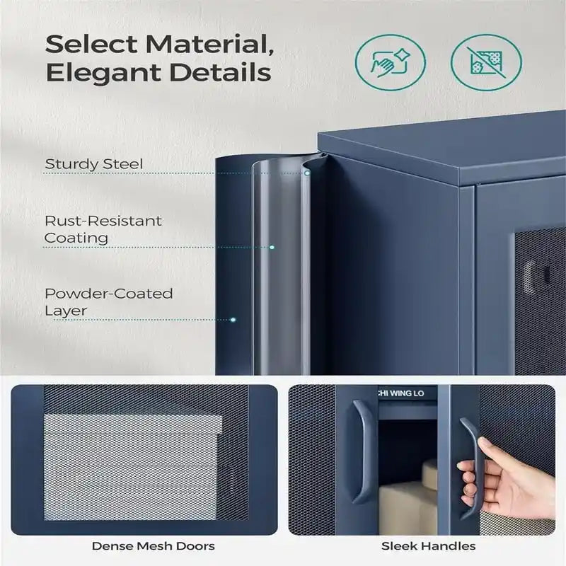 - Made of durable and long-lasting steel, this 15.7D x 31.5W x 41.3H mesh storage cabinet provides sturdy support for your items; also, the matte, powder coatings make cleaning a much easier process