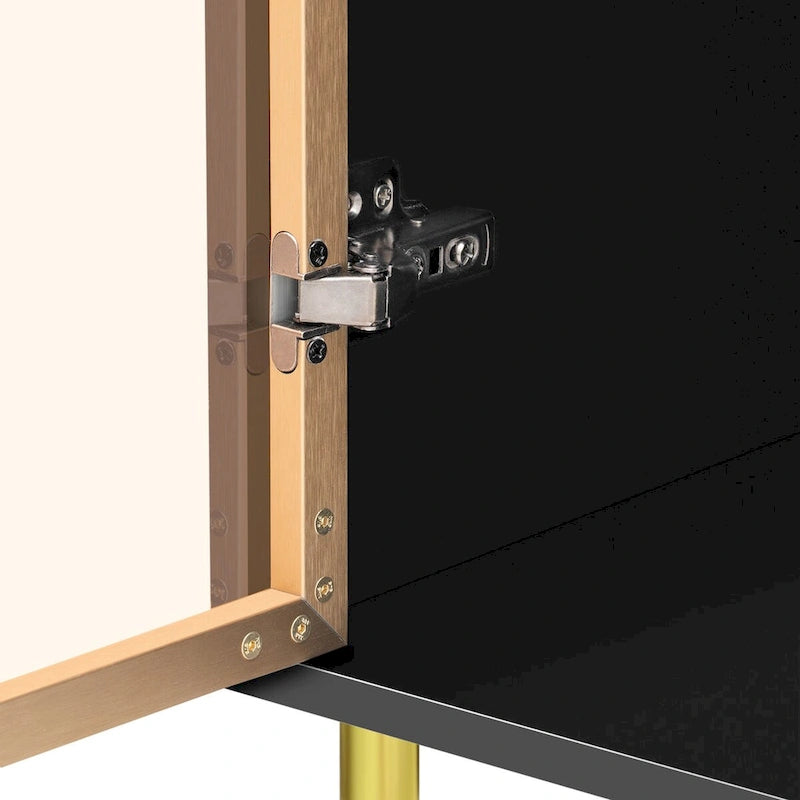 - Modern & Luxury Style: Combines amber-yellow glass doors, marble sticker tabletop, and gold metal legs.