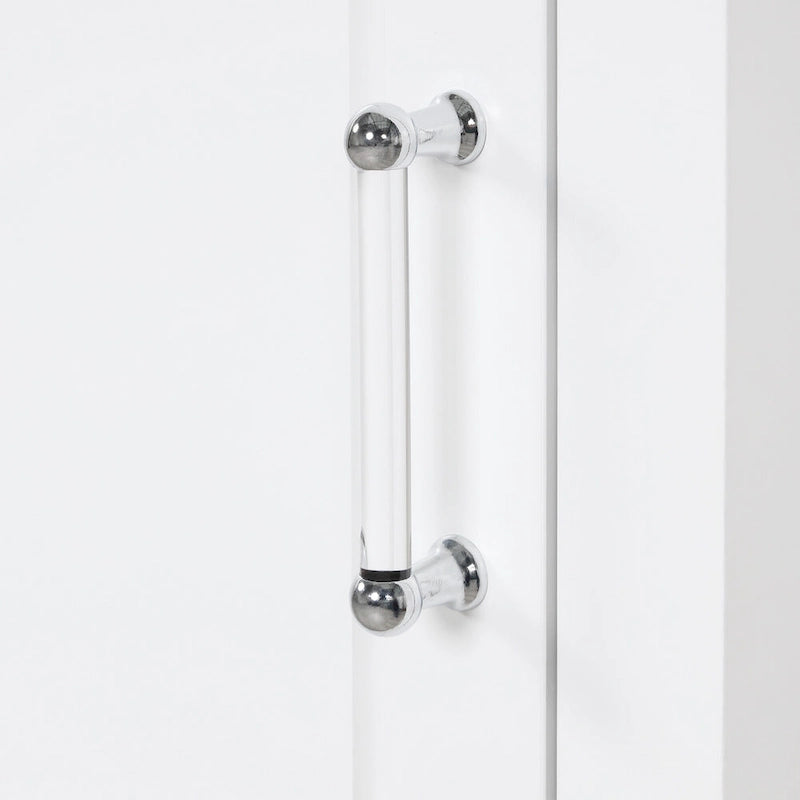 Material: The storage cabinet is made of high-quality MDF boards with painted finish. Thus, the surface is water-proof, smooth and easy to clean. It is convenient to open or close the drawer and door with acrylic bar handles.