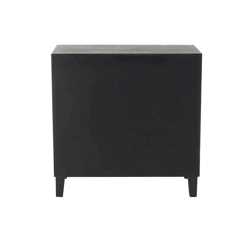 Elevate your living or dining room with this chic geometric storage cabinet, designed to seamlessly blend style and functionality. Offering generous storage space, it adds a touch of artistry to any environment. Each cabinet includes one shelf, with interior dimensions of 31x12.5x13 inches. Shipped in a single carton, this item is intended for indoor use only and arrives fully assembled. It supports up to 100 lbs. This sleek black storage cabinet is crafted from MDF and features a modern aesthetic with one shelf.